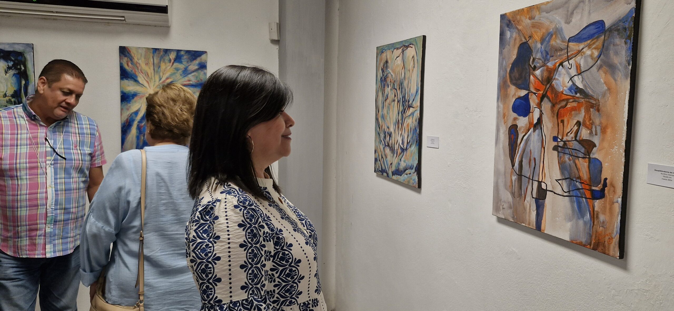 - La exposición ‘Intromisión al estudio de mi mamá’ se compone de 26 obras abstractas donde predomina la técnica de acrílico sobre tela.