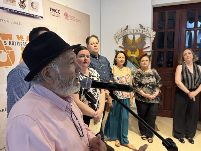 La exposición pictórica de las artistas visuales María Estela García Sotelo, Minerva Solano, Fabiola Gaxiola, Dalila Rivas y Héctor Monge, fue inaugurada por el Coordinador General de Extensión de la Cultura, Homar Arnoldo Medina Barreda, quien destacó el talento plasmado en las obras.