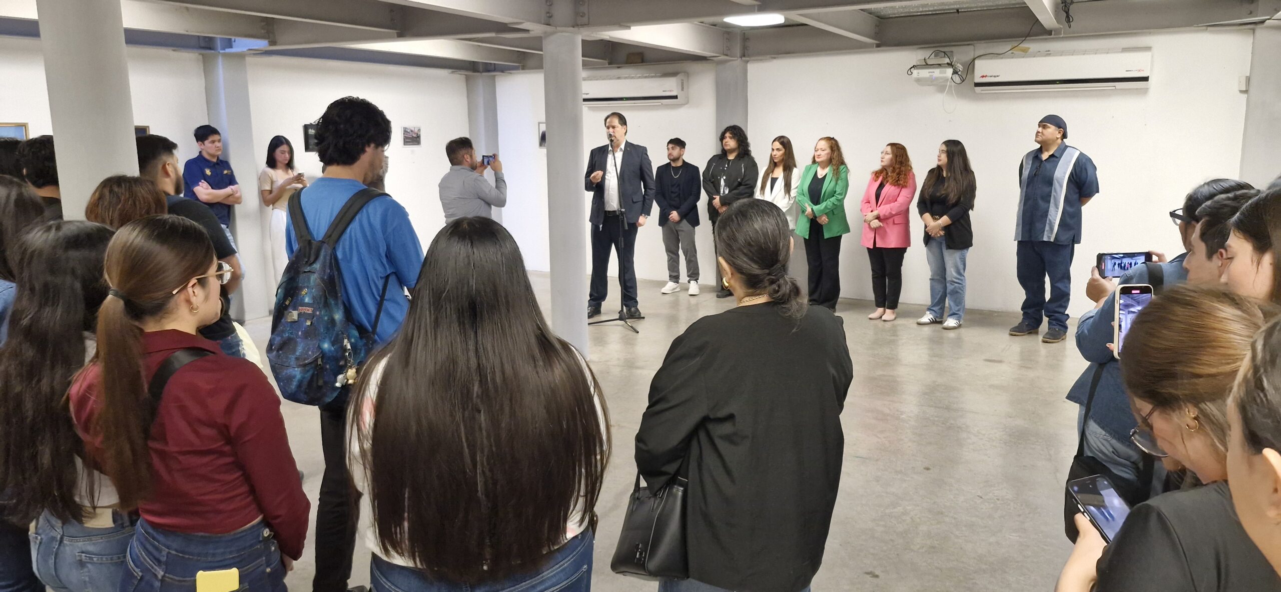 En representación de los estudiantes, Javier Ismael Villarreal Ramos, contó sobre el proceso y las experiencias a lo largo del semestre, y mencionó que esta es la muestra de que se puede transformar lo cotidiano en una obra de arte consciente.