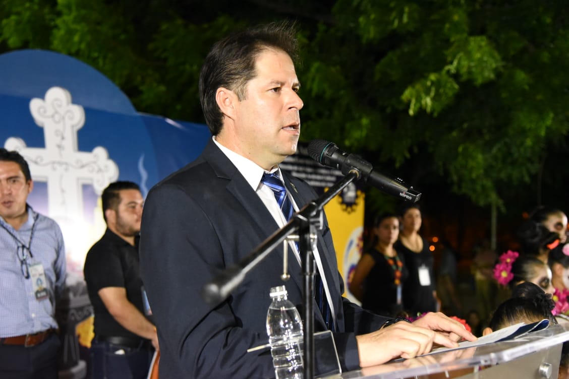 “Invitamos a todos los presentes a disfrutar la vida a través de la celebración de la muerte, en recuerdo de todos aquellos que ya se fueron, conmemoremos a los difuntos a través de las cosas que en vida disfrutaron como la gastronomía, las flores, la danza y la música”, puntualizó.