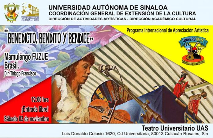 El grupo brasileño Mamulengo Fuzue, bajo la dirección de Thiago Francisco, llega a UniversArte este sábado 3 de noviembre, a las 12:00 del mediodía, en el Teatro Universitario, con el espectáculo ‘Benedicto, Bendito, Bendice’. Es para ti. Es para los niños. Los Sábados Culturales Universitarios son para toda la familia. Y gratis. ¡No faltes!