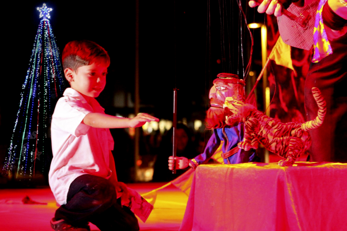 Tras la plazuela Rosales iluminada con el resplandor de los brillos del icónico árbol, el propio Rector, su familia y el total de los asistentes, entre ellos Sofía de Madueña y Silvia de Lara, se dispusieron a disfrutar el magno espectáculo que ofreció la Unidad Académica de Artes, reflejado en un ensamble artístico con música, canto y actuación, en el que participaron tanto alumnos como personal docente y administrativo, acompañados por las notas de la Banda Sinfónica de la UAS, en el que el auditorio gozó de un montaje tejido en torno al Cuento de Navidad, de Charles Dickens.