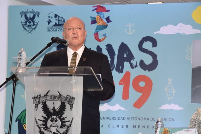 MAZATLÁN.- Es necesario que los libros recuperen los espacios en las familias, en los hogares y en el acervo cultural, planteó el Rector de la Universidad Autónoma de Sinaloa (UAS), doctor Juan Eulogio Guerra Liera, al inaugurar la Feria del Libro FeliUAS 2019, que este año rinde un homenaje al reconocido escritor sinaloense Élmer Mendoza y que sirvió de marco para la firma de convenio entre la Casa Rosalina y la Dirección General de. Bibliotecas del Gobierno Federal.