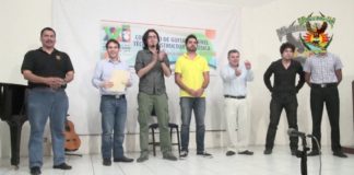 Horacio Alfredo Sánchez Higuera, Jesús Monzón Sánchez y Josué David Gastélum Valle, ganadores de los tres primeros lugares en el III Concurso de guitarra...