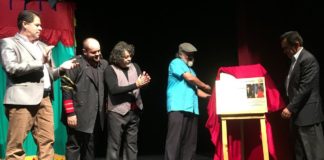 Autoridades universitarias develan la placa por las 500 representaciones del espectáculo de teatro de títeres "La carpa de los dos colores" del Grupo Guiñoleros...